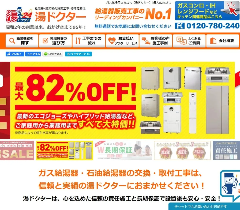 昭和初期から続く老舗ガス会社が運営する給湯器専門サービスで、横浜市戸塚区内での施工実績も豊富な信頼できる業者です。