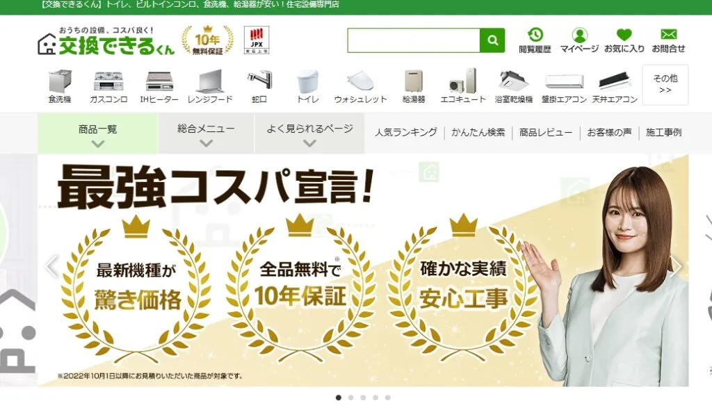 メーカー希望小売価格から最大82%OFFという価格設定で、本体7年・工事10年の長期保証を提供しています。